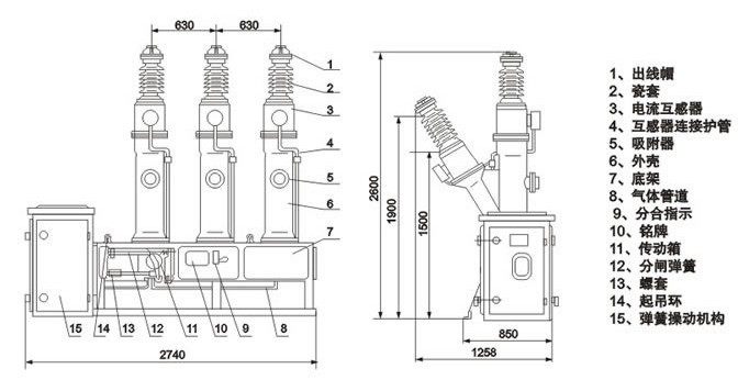 产品开断性能优良,采用压气式灭弧室,燃弧时间短,电寿命长,在额定电压下连续开断31.5kA短路电流达21次不检修,不更换六氟化硫气体;机械可靠性高。机械寿命达3000次以上;能频繁操作,每台可装12只电流互感器,供用户选择。该产品采用新型MKZ型SF6指针式密度表,压力表读数不受温度变化的影响,使用方便。