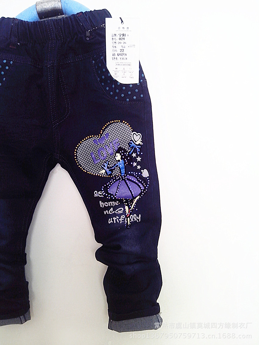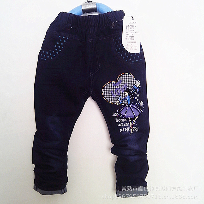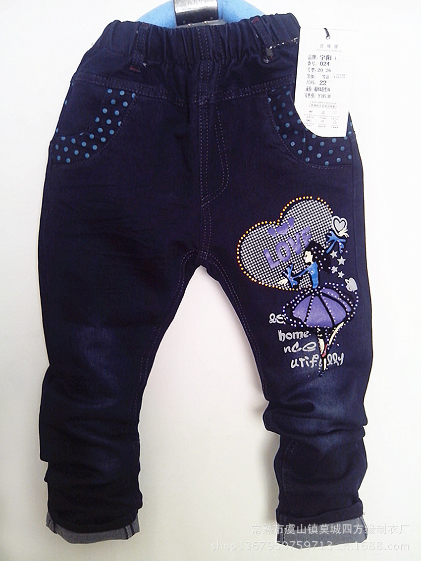 2013新款秋韩版精品“印花小美女”中童装儿童弹力牛仔裤女批发