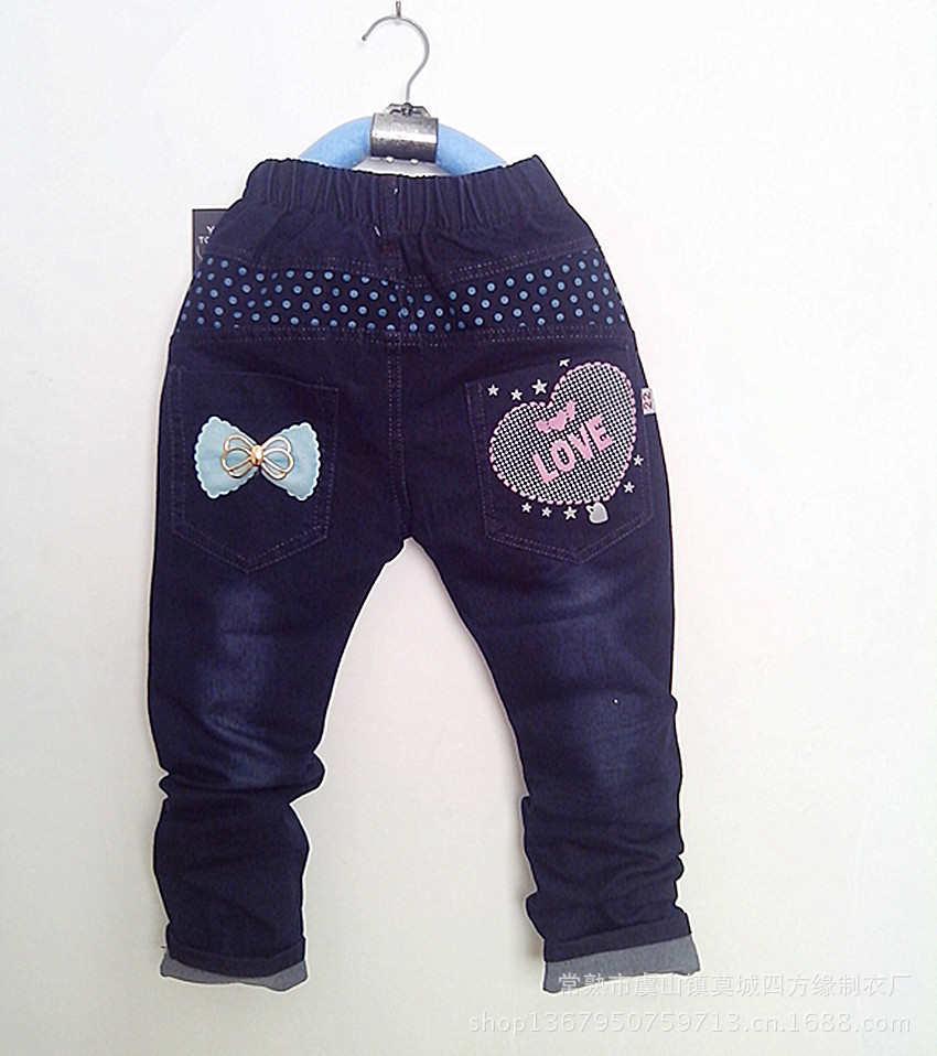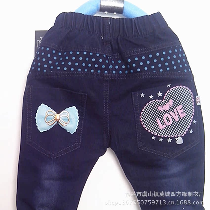 秋款女童牛仔单裤 童裤批发 印花女童小童牛仔裤3-6岁小童裤