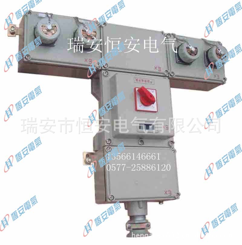 箱体内装有断路器、插销等电气元件,箱壁上装面板式防爆插座,可根据需要组成不同的回路数,不同电压、电流规格要求等。