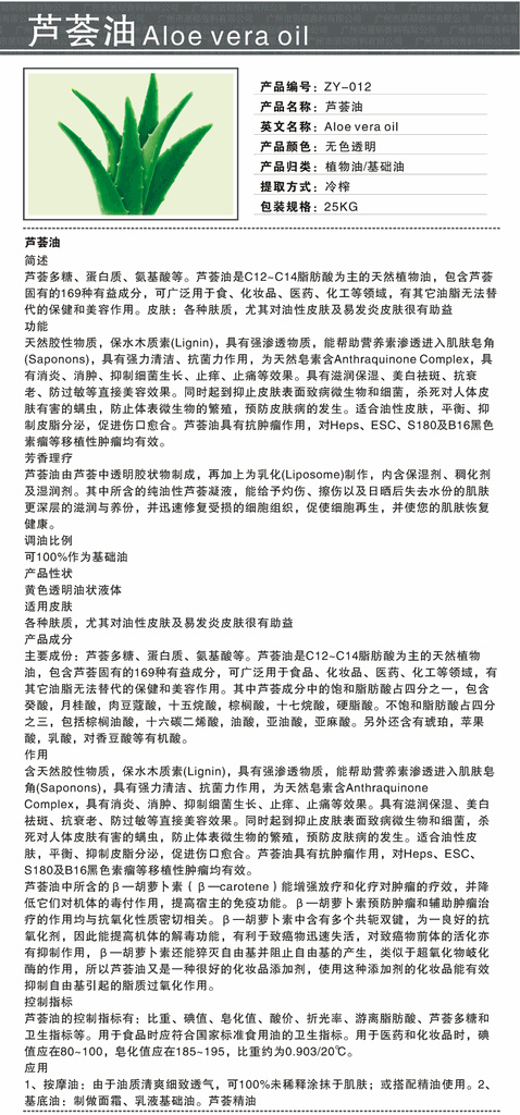 直供100%芦荟油-化妆品原料油油/按摩油/植物精油/香料油
