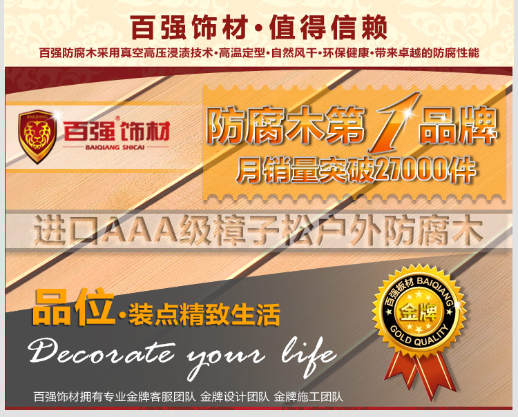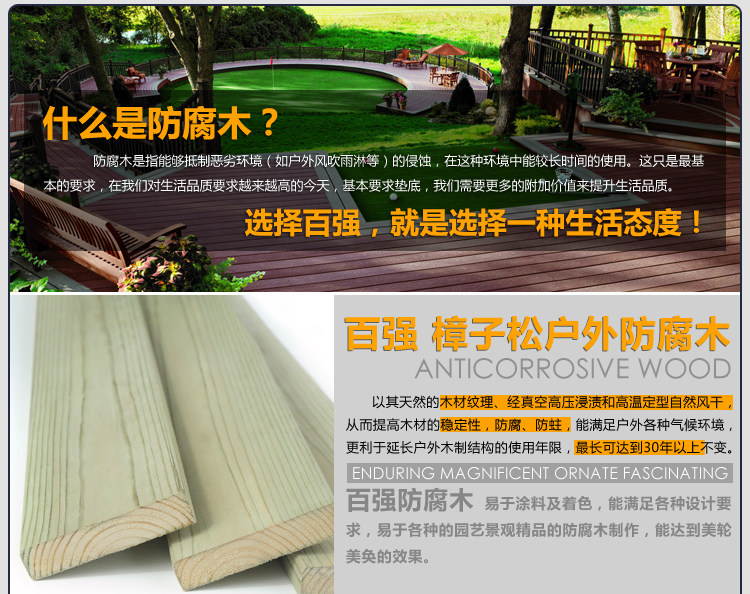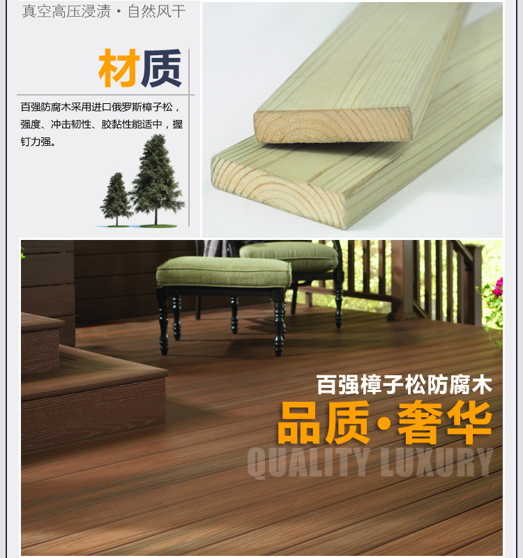 百强牌-进口樟子松防腐木防滑户外地板炭碳化木 88*11防腐木