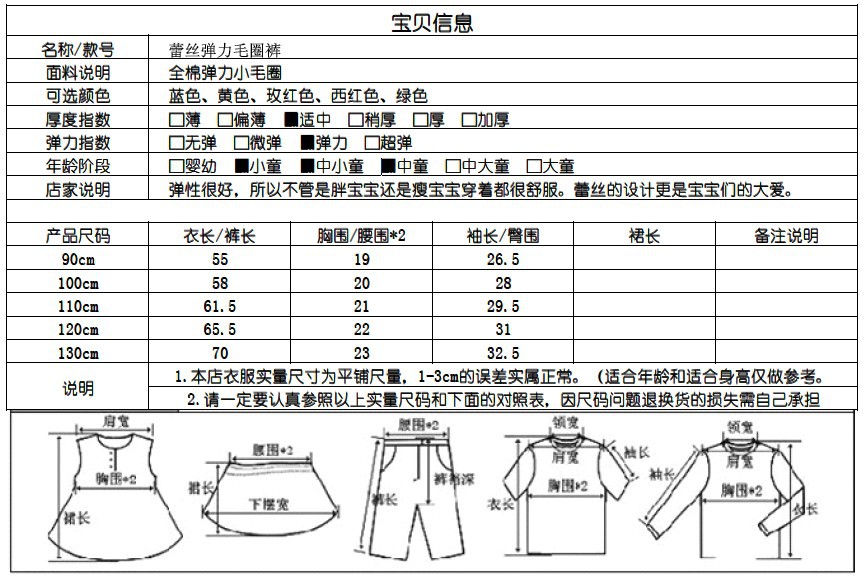 尺码90cm-130cm 适合身高90-130cm左右 一手5件批