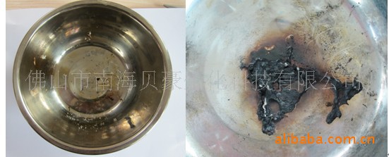 剩物少,没有化学物残留; 剩余物多,化学物质残留,黏在底部。