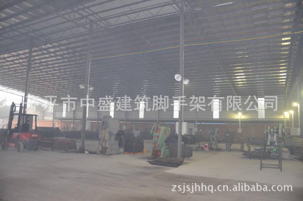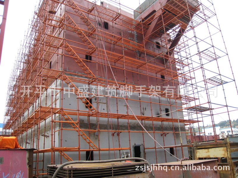 开平中盛建筑脚手架有限公司供应各种:脚手架(门式脚手架、钢支顶支撑架、雷亚架(舞台架)、菊花扣式脚手架、香蕉头式脚手架、碗扣式脚手架、轮扣式脚手架、等国内国外市场需要的脚手架及配件)和钢模板(国标钢模板、桥梁钢模板、异型钢模板及客户施工所需要的各自形状钢模板)。本公司采用先进设备进行加工。焊接工艺采用半自动系统焊接。产品质量保证可靠。表面处理可根据客户要求进行加工:油漆、喷粉、电镀、热镀锌。所有产品的配件齐全,规格型号齐备。欢迎来电订购或者来厂参观定货;