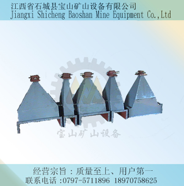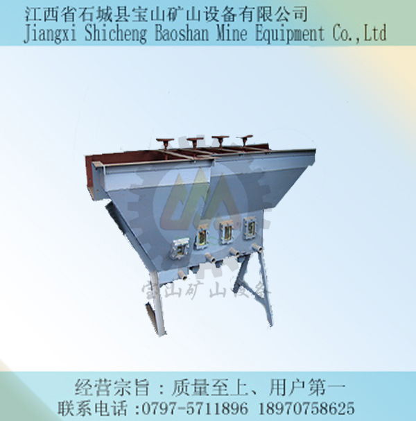 水力分级箱是一铁制的角锥箱,上部安有楔形阻砂条,下面装有分级箱底阀。通常由从200毫米到800毫米一系列宽度的分级箱用普通水槽联结而成,沉砂则由粗到细排出。 它广泛应用在摇床选别前的水力分级作业中,起到分级和分配矿量的作用,以提高摇床的选别效率。水力分级箱具有结构简单,便于维护、不消耗动力、性能可靠、操作方便等优点。 |