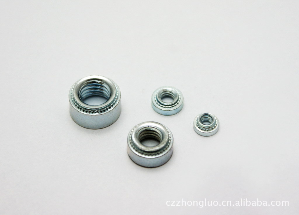 压铆螺母为安装内螺纹到精密的金属板材产品提供了简单的方法,起到可靠的固定作用,小页精巧的螺母,使板材一边嵌平加工完美,安装时,只需将铆螺母放入金属板的孔中,以压力完成镶嵌紧固功能。同时其又具有以下优点: