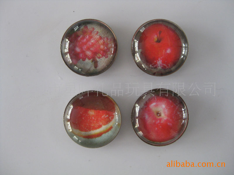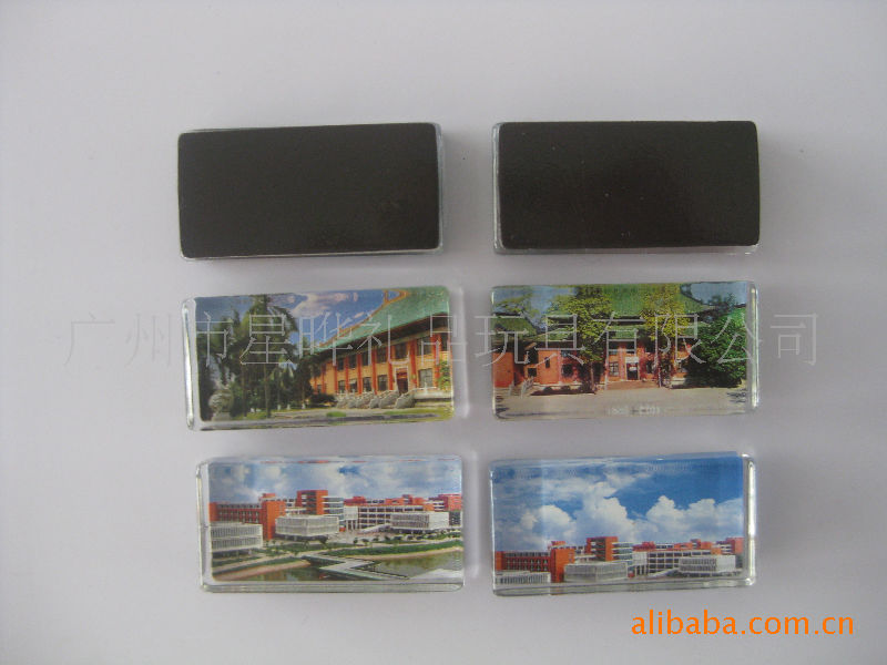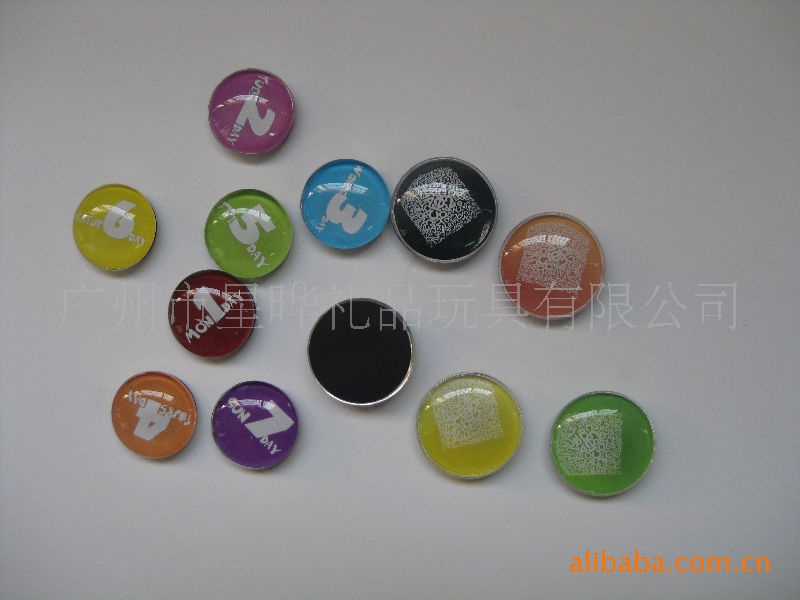 11)玻璃冰箱贴:采用背面软胶磁铁+上面铜版纸彩色印刷+半圆玻璃腹膜制作而成