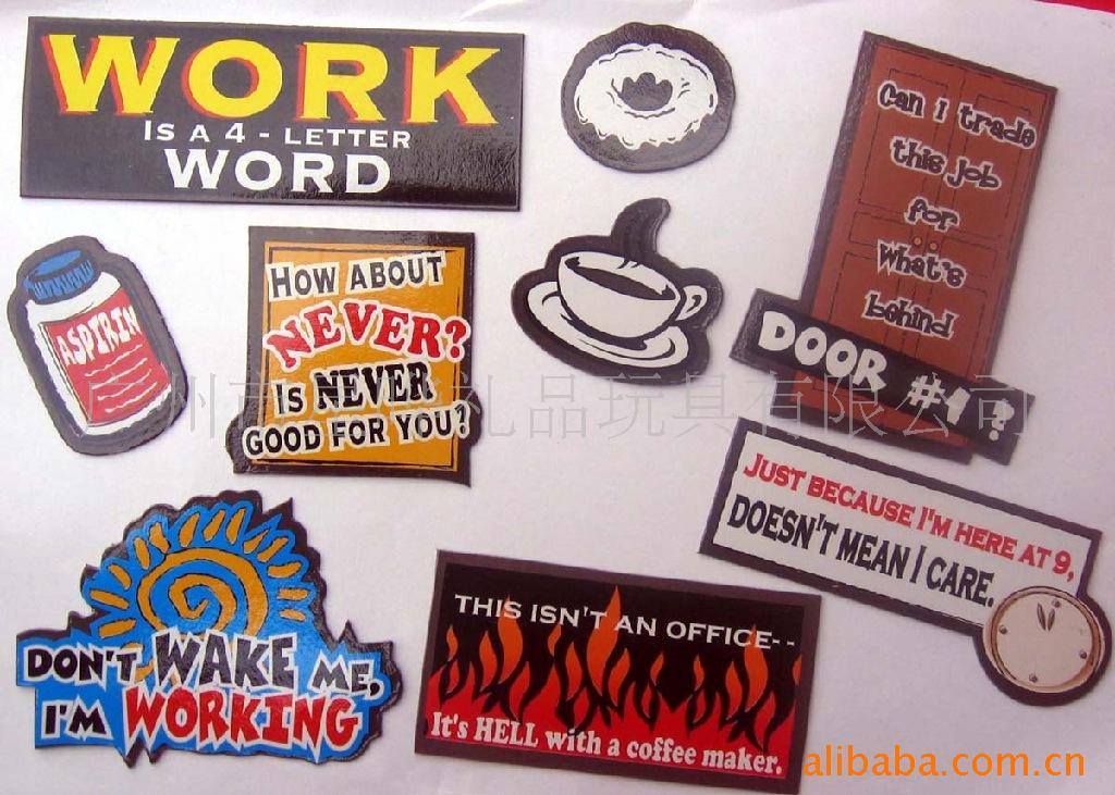 12)滴胶冰箱贴:采用下面软胶磁铁+上面铜版纸彩色印刷+滴胶腹膜制作而成