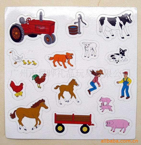 7)磁性拼图(纸板拼图):采用下面软胶磁铁(或纸板 灰板纸)+上面铜版纸四色印刷裱光膜,中间冲切设计需要的拼图小片来制作而。