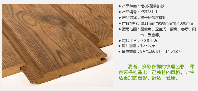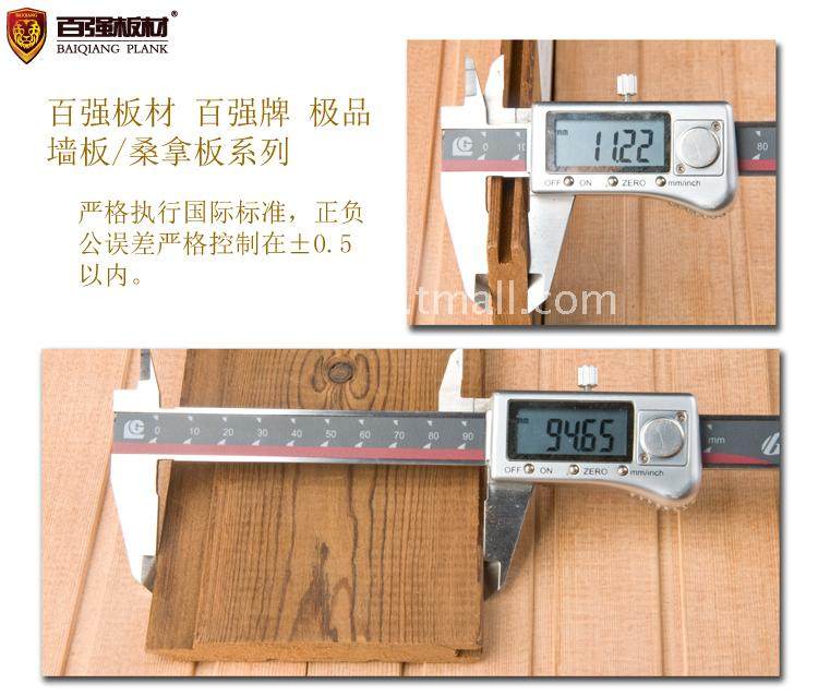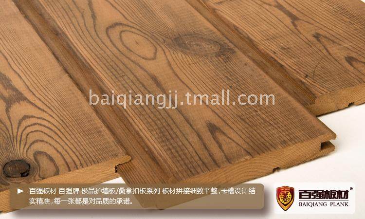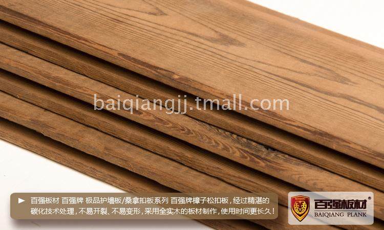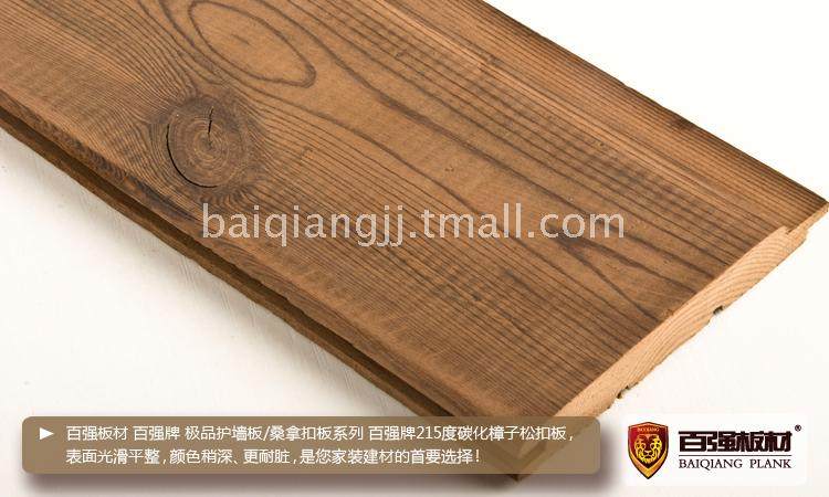 百强牌 95X11.5mm俄罗斯樟子松215度碳化桑拿板 实木扣板 护墙板