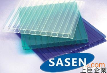 上臣PC阳光板,耐力板,pc板,PC阳光板, PC耐力板,PC声屏障专用板产品特性: (1)透光性:P C板透光率最高可达89%,可与玻璃相妣美。UV涂层板在太阳光下爆晒不会产生黄变,雾化,透光不佳,十年后透光流失仅为6%,PVC流失率则高达15%—20%,玻璃纤维为12%-20%。 (2)抗撞击:撞击强度是普通玻璃的250-300倍,同等厚度亚克力板的30倍,是钢化玻璃的2-20倍,用3kg锤以下两米坠下也无裂痕,有“不碎玻璃”和“响钢”的美称。 (3)重量轻:比重仅为玻璃的一半,节省运输、搬卸、安装以及支撑框架的成本。 (4)阻燃:国家标准GB50222—95确认,PC板为难燃一级,即B1级。PC板自身燃点是580摄氏度,离火后自熄,燃烧时不会产生有毒气体,不会助长火势的蔓延。 (5)防紫外线:PC板一面镀有抗紫外线(UV)涂层,另一面具有抗冷凝处理,集抗紫外线、隔热防滴露功能于一身。可阻挡紫外线穿过,及适合保护贵重艺术品及展品,使其不受紫外线破坏,防紫外线(UV)保护膜 太阳辐射对聚合物材料有明确害处,会使表面产生细纹引起降解。这些细纹易受水,尘和水化学物质和侵蚀。这些对聚合物的影响程度很大程度上程度上依赖于环境参数如地理位置,海拔高度和季节变化等。宏盛板材有单面或双面的紫外线保护层,有良好的室外耐侯性能。这种独特的保护保证长期在强烈的紫外线强光照射下,仍能长期使用并保持其光学特性,与其它热塑形材料相比。 (6)可弯曲性:可依设计图在工地现场采用冷弯方式,安装成拱形,半圆形顶和窗。最小弯曲半径为采用板厚度的175倍,亦可热弯。 (7)隔音性:PC板隔音效果明显,比同等厚度的玻璃和亚加力板有更佳的音,响绝缘性,在厚度相同的条件下,PC板的隔声量比玻璃提高3—4DB。在国际上是高速公路隔音屏障的首选材料。 (8)节能性:夏天保凉,冬天保温,PC板有更低于普通玻璃和其它塑料的热导率(K值),隔热效果比同等玻璃高7%-25%,PC板的隔热最高至49%。从而使热量损失大大降低,用于有暖设备的建筑,属环保材料。 (9)温度适应性:PC板在-100摄氏度时不发生冷脆,在135摄氏度时不软化,在恶劣的环境中其力学,机械性能等均无明显变化。 (10)耐候性:PC板可以在-40℃至120℃范围保持各项物理指标的稳定性。人工气候老化试验4000小时,黄变度为2,透光率降低值仅0.6%。 (11)防结露: 室外温度为0℃,室内温度为23℃,室内相对湿度低于80%时,材料的内表面不结露。供应阳光板价格报价,耐力板价格报价,pc板价格报价PC耐力板产品性能(一)机械性能1、抗冲击强度:PC耐力板抗冲击性能极佳,它比传统玻璃高250倍,比亚克力板材高30倍。Pc耐力板的冲击强度有如“透明钢板”之称。2、拉伸强度好,PC耐力板耐热性佳,即使在120℃,其拉伸强度仍可达350kgf/cm2。3、弯曲强度:PC耐力板抗弯性良好,即使弯曲角度达90°,仍不断裂。4、抗疲劳与抗蠕变性:PC耐力板抗蠕变性在热塑性塑胶中是最好的。即使在高温下其蠕变仍很小。(二)热性能1、熔形温度:PC耐力板熔形温度135℃,其连续使用温度达120℃。2、线膨胀系数:线膨胀系数为7×10-5cm/cm/℃在塑胶中属较小的。3、脆化温度:PC耐力板脆化温度为-40℃,最低连续使用温度为-30℃,是一般塑胶不可比的。4、燃烧性:PC耐力板属难燃自熄性塑胶之一,其在高温加热时不会产生有毒气体。5、热传导率:PC耐力板的热导率与一般塑胶差异不大,是玻璃的1/4,铁的1/300,铝的1/1000,铜的1/2000,属保温性能优良的材料之一。(三)光学性能1、透光率:PC耐力板的透光率为85%以上与玻璃相当。2、耐候性:一般PC耐力板材长期暴露室外,受紫外线照射易引起黄变及表层劣化。高锋PC耐力板表面附有一层抗UV层,即使长期暴露室外,其光学,机械性能均无显着变化。(四)隔音性能上臣PC耐力板隔音效果比玻璃高3-4DB,是目前高速公路隔音屏障的首选材料.上臣PC耐力板已被天津轻轨工程、武汉轻轨工程以及全国很多城市道路隔音屏上选用。(五)抗化学性聚碳酸酯在常温下对弱酸、弱碱及醇类的抵抗性能良好,但对强酸碱、苯类、氯化烃类和酯类的抵抗性能稍差,极易产生溶解、溶胀或分解的现象。由于其抗化学性与温度高低、内部残留应力大小及暴露时间长短有关,故使用前应特别注意。(详见PC耐力板与不相容化学物说明)(六)重量轻在相同厚度及面积下,PC耐力板重量仅为玻璃的一半,因此可大量节省搬运与施工的难度与运费。三、上臣耐力板施工规范要求(一)安装前注意事项1、清洁金属框架,绝对不可有金属弯管油或酸洗液等化学物质残留于框架上。2、预留膨胀空间,膨胀空间大小可由下列公式计算:膨胀值=线性膨胀系数×长度×最大温度变化值线性膨胀系数为固定值=7×10-5(cm/cm/℃)实例:长度100cm的PC板,安装在昼夜温差40℃的环境中,则其预留膨胀空间为:膨胀值=7×10-5(cm/cm/℃)×100(cm)×40℃=0.28(cm)故预留膨胀空间至少要0.28cm。3、PVC垫圈中的增塑剂(DOP)及某些橡胶垫圈中的化学物质会迁移到垫圈表面,与PC板接触后会破坏PC板,因此绝对不可使用。建议使用垫圈的材质为EPDM rubber(三元乙丙橡胶)、Siliconer rubber(硅橡胶)及Neoprene rubber(氯丁橡胶)。如没有合适的垫圈,则宁可不用,也不能选用会破坏PC材质的垫圈。4、需密封安装,可选用中性的Silicone (硅)系列密封胶以及双面防水胶带和橡胶压条。5、双面防水胶带除用于防水外,也可用于PC板与框架间的衬垫材料。有部分双面胶带的胶面对PC板皆有破坏,故施工中兼选用。6、裁