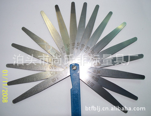 本公司已有十余年生产塞尺和间隙片的历史,现已建立了严格的管理体系。从毛胚带刚到成品塞尺和间隙片有一套完整的生产流水线,本厂设备齐全、技术力量雄厚,产品质量保证,售后服务到位。 塞尺具有精度高、弹性好、外观平整光亮、经久耐用、使用方便等特点,产品畅销全国各地、并远销海外、深受广大用户信赖。 可供产品:1:各种规格的中申牌农机,成组塞尺及单片(0.02-1.00) 2:高精度超薄冷轧带钢、精度可达0.001 可供材料:65mn、T8A、T10A、SK4、SK5等系列。 可供规格:30、32、35*0.02-1.00、特殊规格可根据用户需要专门 生产,并可代客户分丝、热处理等深加工。 质量实行三包、价格保证合理 欢迎中外用户垂询订购。