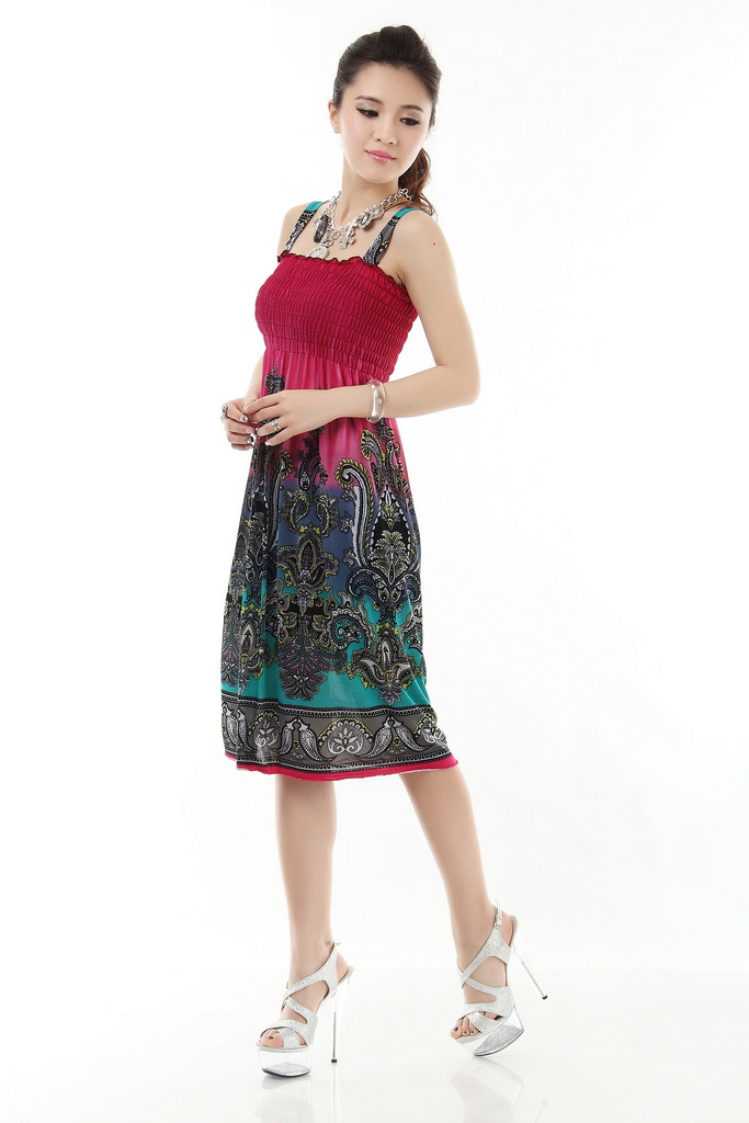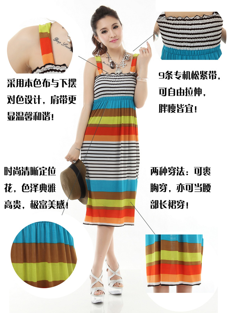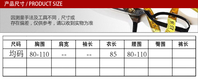 胸围/腰围:80-110cm (褶皱弹性强);裙长:85cm(肩带有松紧,无内衬)。