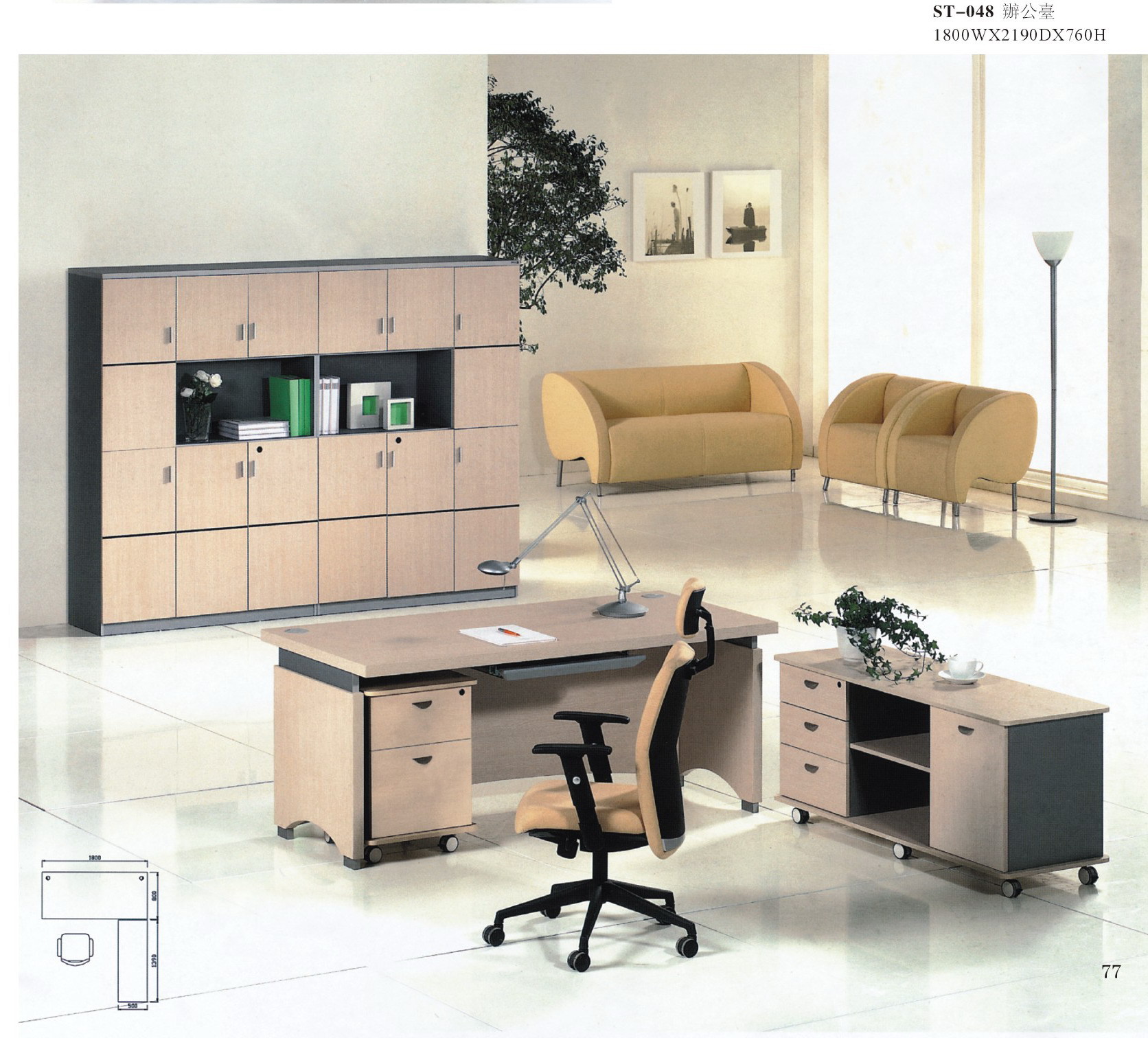 板式大班台配置组合: