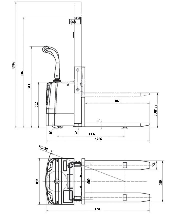 PR-PWS-100/35 | 1000Kg | 3500mm | 2330mm | 550x1070mm | DC24V/2000W | 2X12V 70Ah | DC24V 700W | 24V/15A | 535kg |