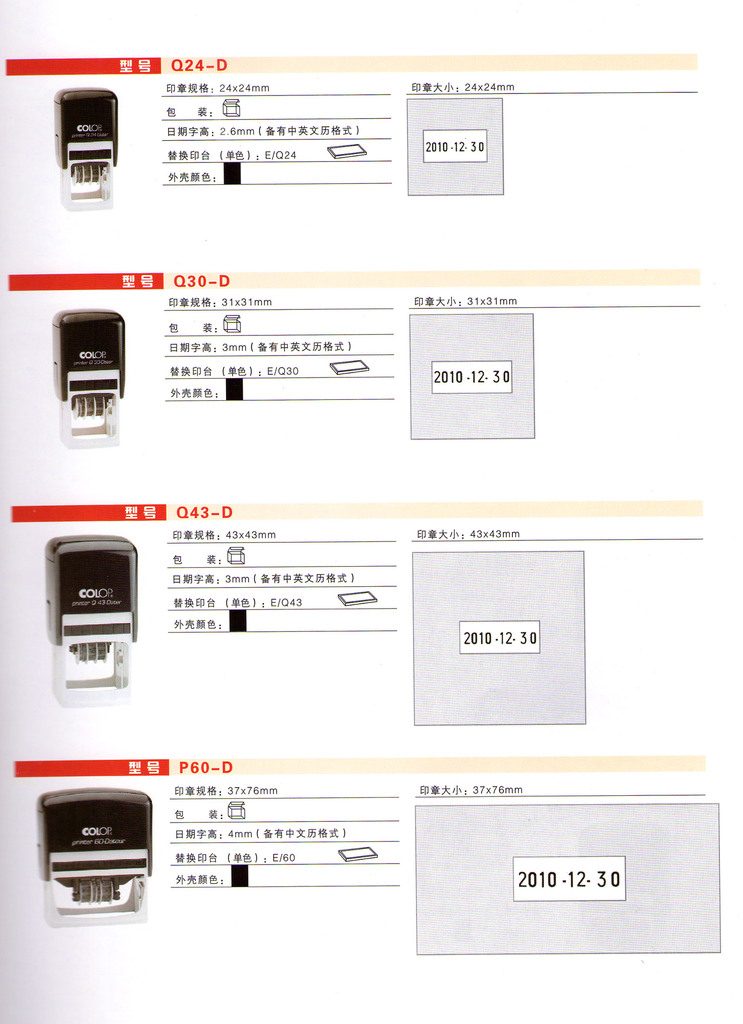 印章系列:轻型日期回墨印章,重型日期回墨印章,迷你型回墨印章,便携式印章,活字自配印章