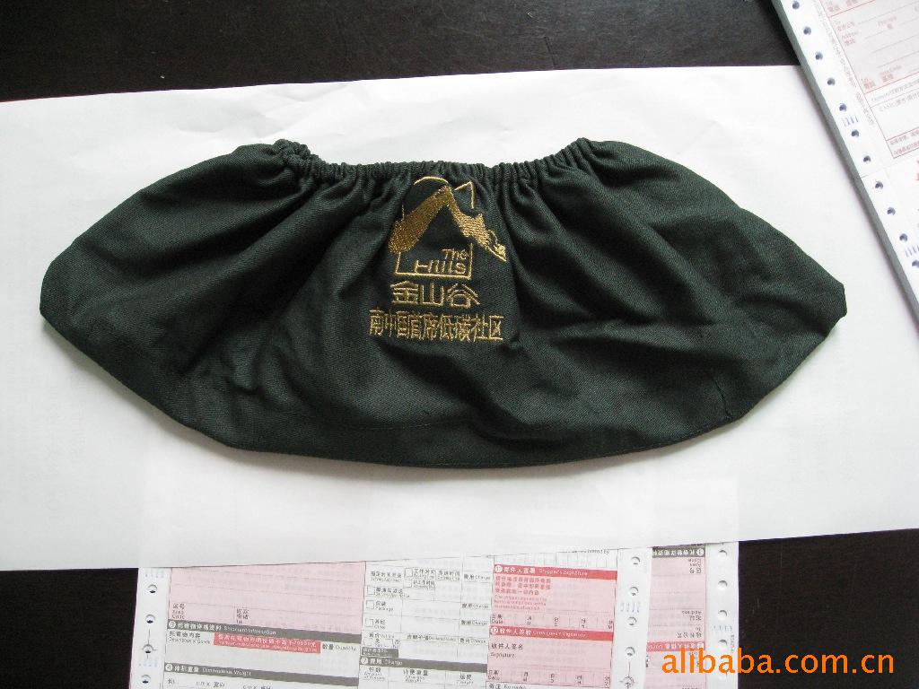 新款布料,精品形象呢布料制料,加防滑底材料做底部,在光滑地滑上走动可以起到止滑作用。材料厚结实,耐用。12只/PE袋子,200双/箱。