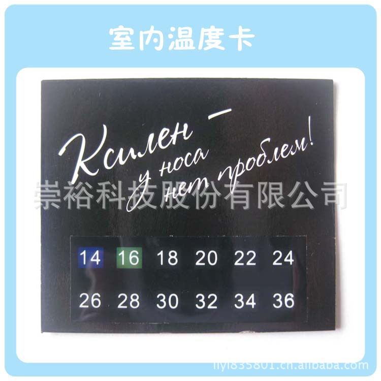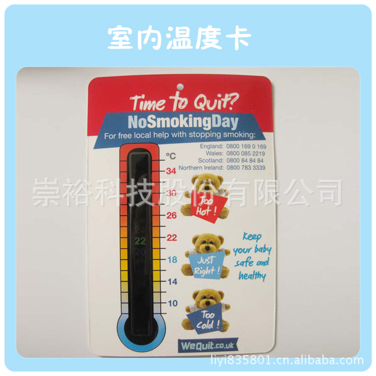 1.Room / Fridge thermometer card, top quality with advanced liquid crystal temperature material. No mercury, non Toxic, no batteries required.