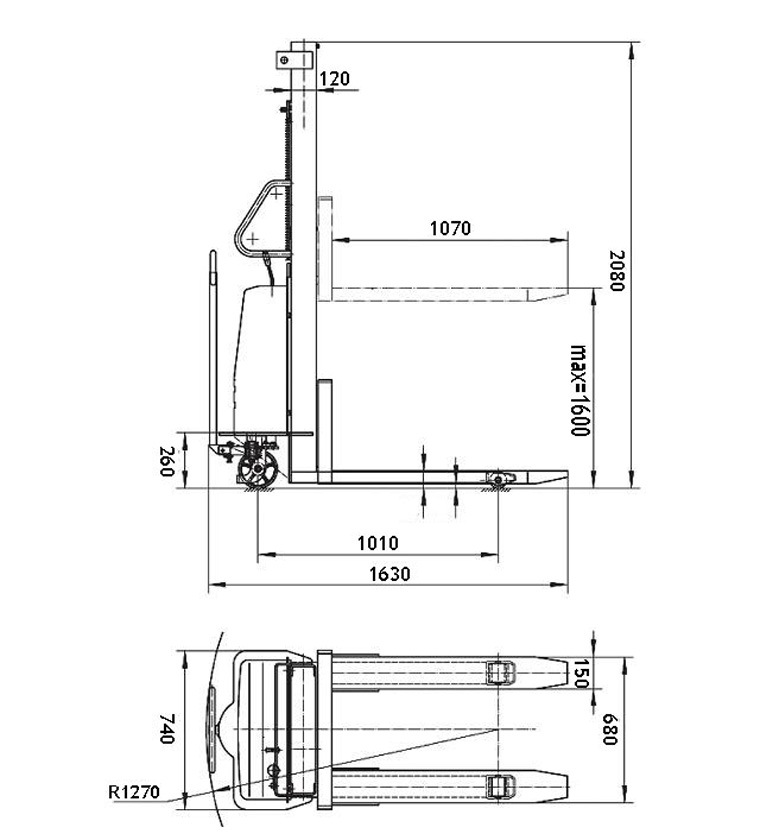 PR-EH-150/16 | 1500Kg | 1600mm | 2030mm | 85mm | Fixed 550x900mm |