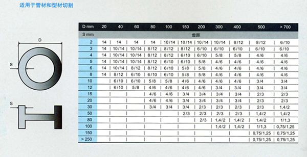 齿形众多,附管材和型材的切割选择齿形表