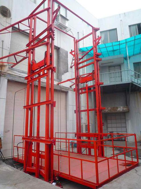 LHSJD系列导轨式液压升降平台 导轨式液压升降机是一种非剪叉式液压升降台,用于二层以上工业厂房、餐厅、酒楼货物运输,由于最低高度仅150-300mm,最实用于不能开挖地坑的工作场所,同时无须上部调点,具有多种形式(单柱、双柱、四柱),动作平稳、操作简单可靠,液压、电器多种货物传输经济、轻松。(具体承载力及升高层数、尺寸可根据用户要求设计制作) 导轨式液压货梯、货物提升机主要用各种工作层间货物上下运送;立体车库和地下车库二层以上高楼间、无法开挖地坑场所、顶层高度不能到达要求的场合等比较难解决的狭小空间,济南龙豪液压机械有限公司将竭尽全力为你打量身打造高效率的送货平台,产品液压系统设置防坠、上下层门互动连锁,各楼层和升降台工作台面均可设置操作按钮,实现多点控制。产品结构坚固,承载量大,升降平稳,安装维护简单方便,是经济实用的低楼层间替代电梯的理想货物输送设备。 根据升降台的安装环境和使用要求,选择不同的可选配置,可取得更好的使用效果,