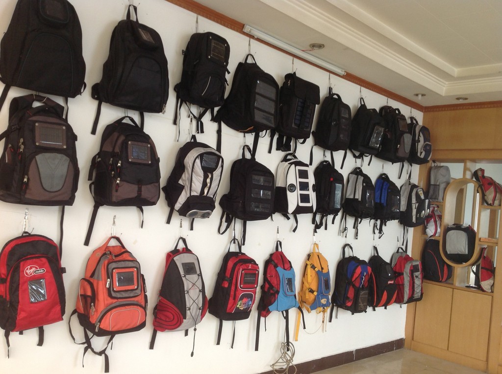 系列太阳能背包是通过太阳能电池板吸收太阳能并将太阳能转变为电能,贮存在内置的蓄电池内,根据不同的接口,给各种不同的手机或电子产品进行充电或供电,适合野外没有电时的应急使用。长期无阳光时,也可以将电池取出更换有电的电池(一次性干电池也可)来给手机补充电能,或采用专用的充电器,利用市电给蓄电盒充电。该产品操作简单,使用安全,携带方便,样式新颖,是居家,旅行的最佳充电产品。