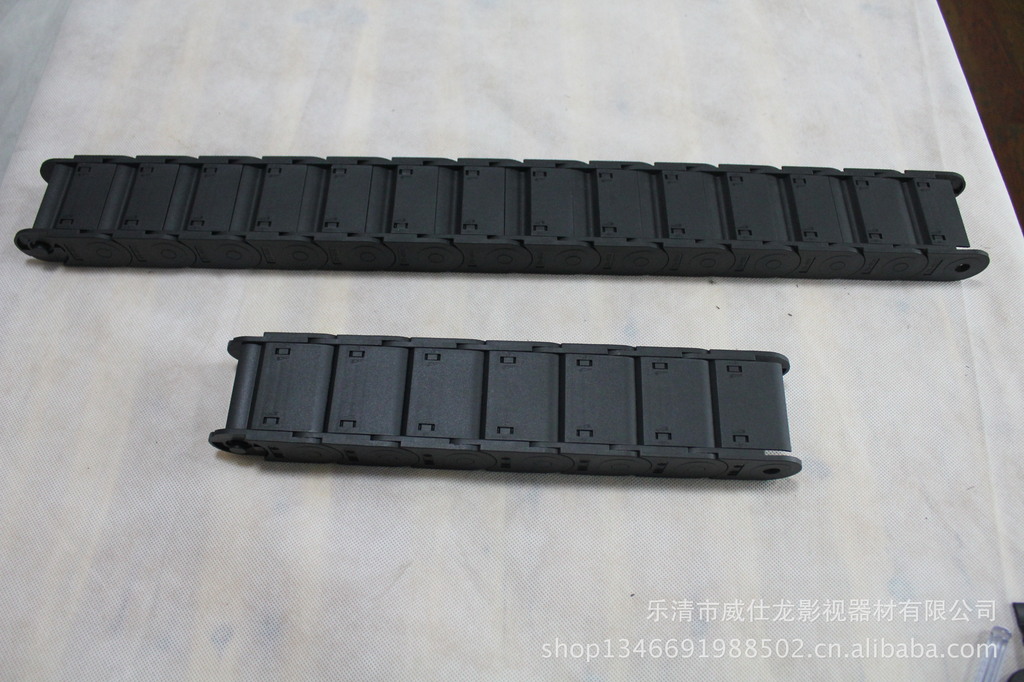 (2)拖链的每一节都能打开,便于安装和维修。运动时噪音低、耐磨,可高速运动。