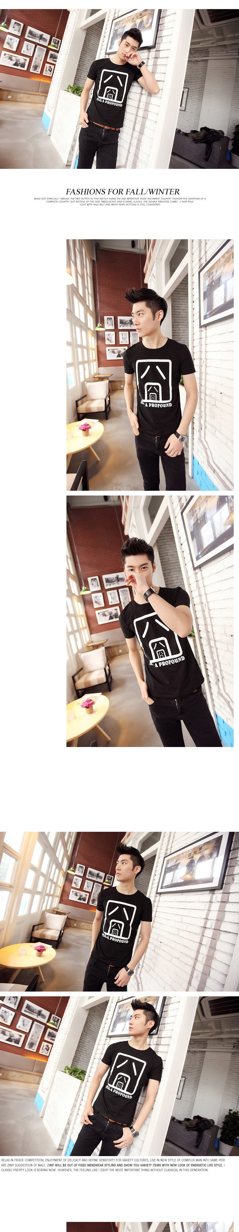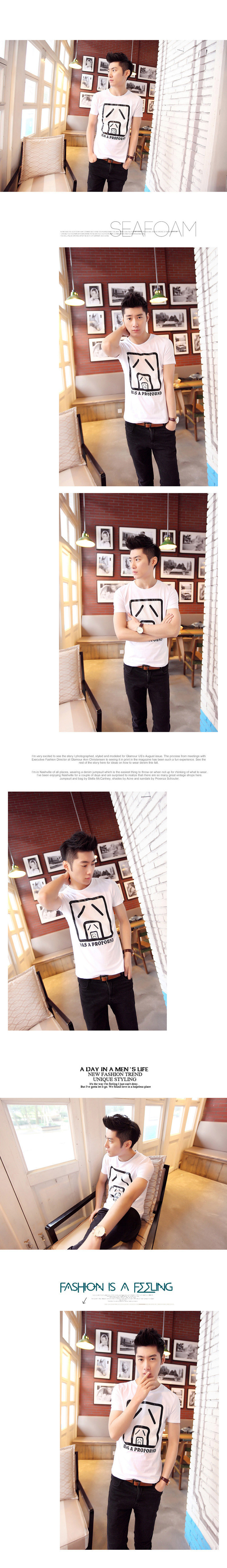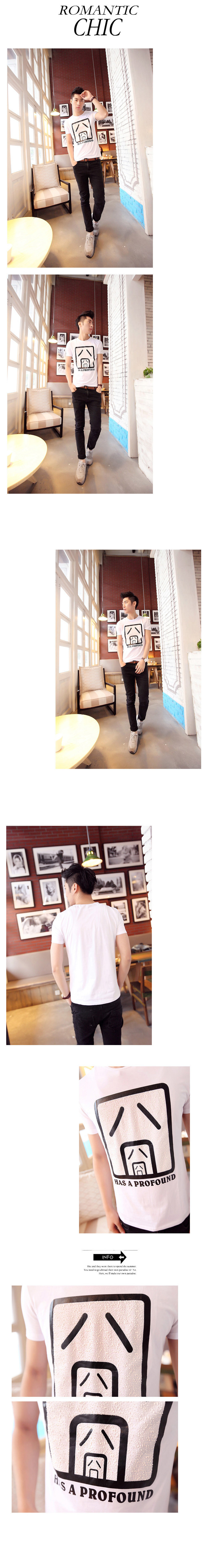 夏装圆领修身短袖t恤韩版囧字印花纯棉短袖t恤 一件代销男装批发