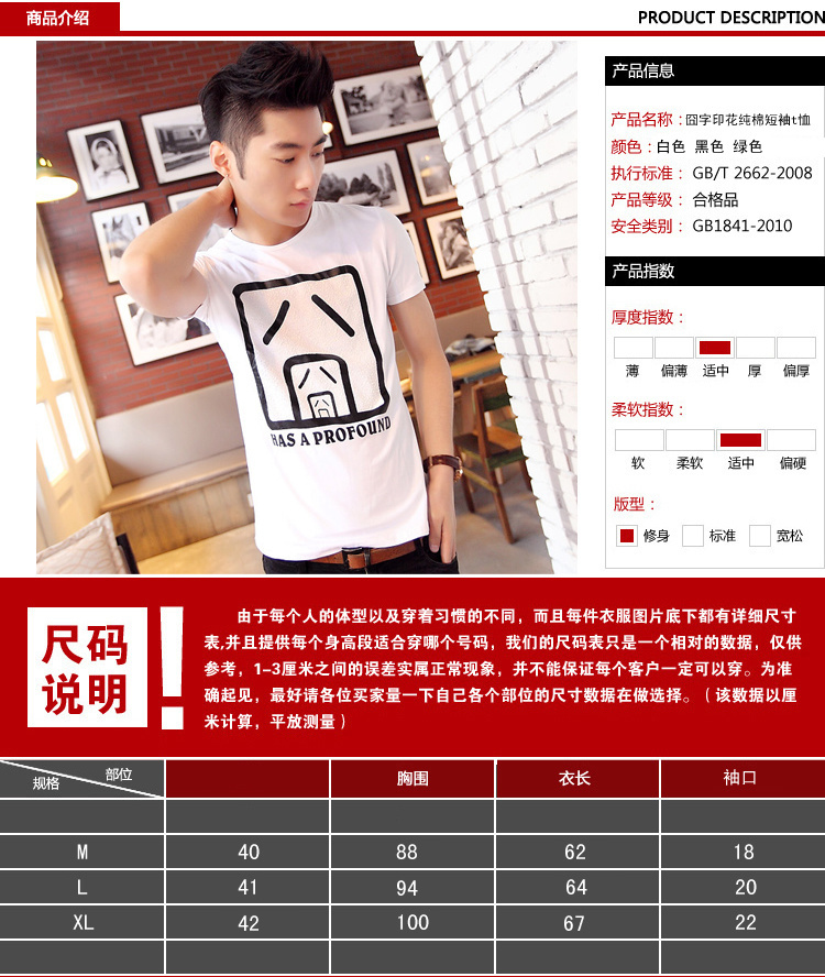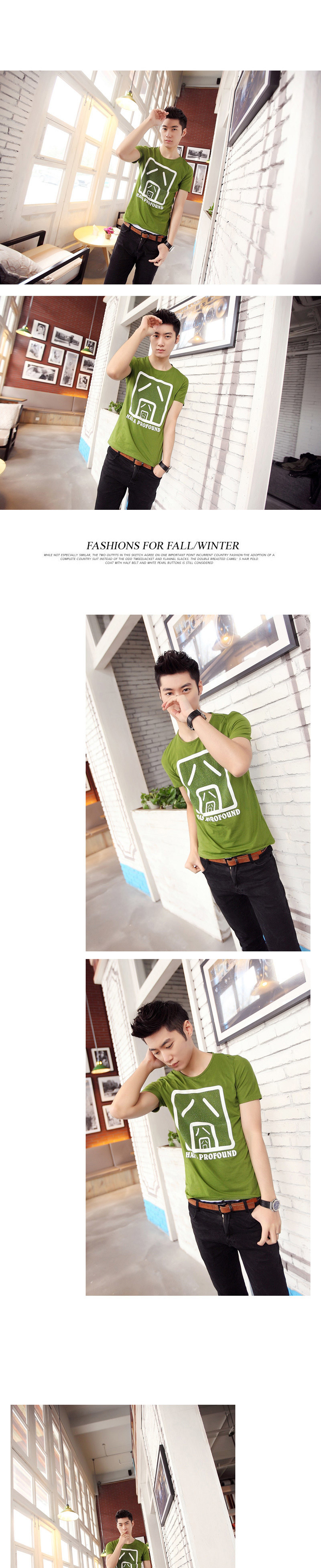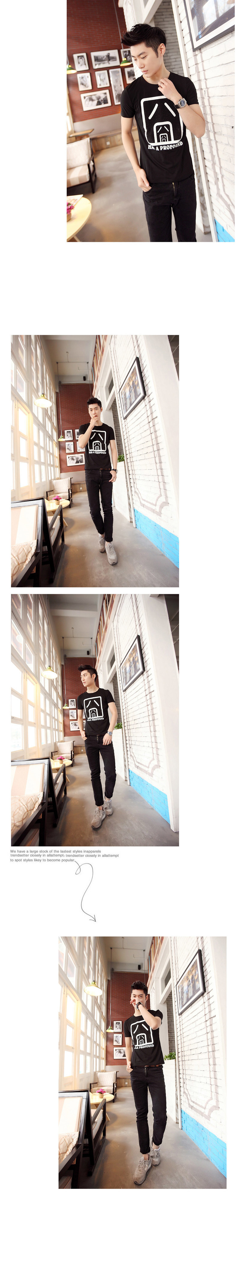 夏装圆领修身短袖t恤韩版囧字印花纯棉短袖t恤 一件代销男装批发