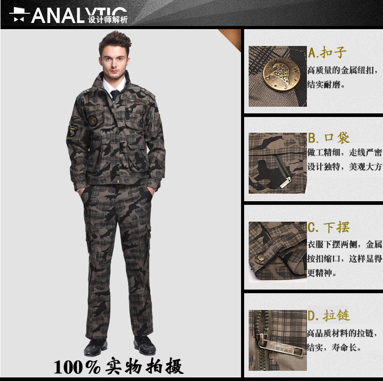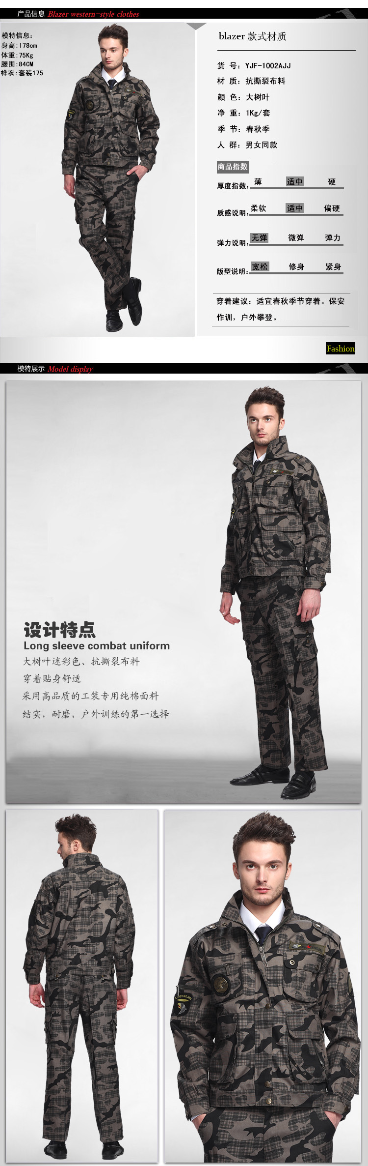 军训户外迷彩服、独特的树叶型迷彩图、春季迷彩服