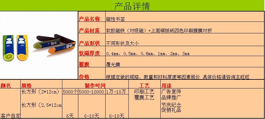 磁性书签价格低、流动性大、视觉效果好、时效性长,曝光率大,自然广告效应就好。