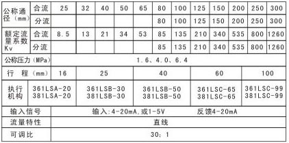 型 式:361L(381L)系列电子式电动执行机构(可配德国PSQ,国产DKZ以及其它执行机构)输入信号:4-20mA DC 或1-5V(输入电阻250Ω)电源电压:361L执行机构:220V,50/60Hz手动机构:离合式作用型式:电关式右电开式