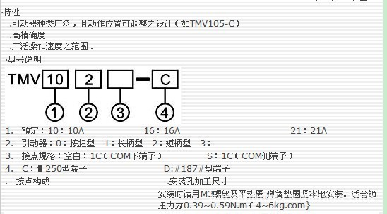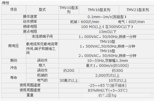 型式 | TW-101 AB | TW-1012 AB | TW-1014 AB | | OF 最大 | 400g | 200g | 240g | | RF 最小 | 114g | 60g | 70g | | PT 最大 | 1.6mm | 3.5mm | 3mm | | OT 最小 | 0.25mm | 1.8mm | 1.2mm | | MD 最大 | 0.65mm | 1.6mm | 2mm | | OP | 11.7 ±0.4mm | 14.6 ±0.8mm | 25.3 ±0.8mm |