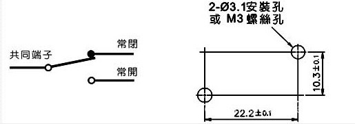 額定電壓 (V) | 非電感性負載(A) 電感性負載(A) | 突入電流 (A) | 電阻負載 | 燈泡負載 | 電感性負載 | 馬達負載 | NC | NC | NC | NO | NC | NO | NC | NO | NC | NO | 125 VAC | 250VAC | 8 VDC | 14 VDC | 30 VDC | 125 VDC | 250 VDC |