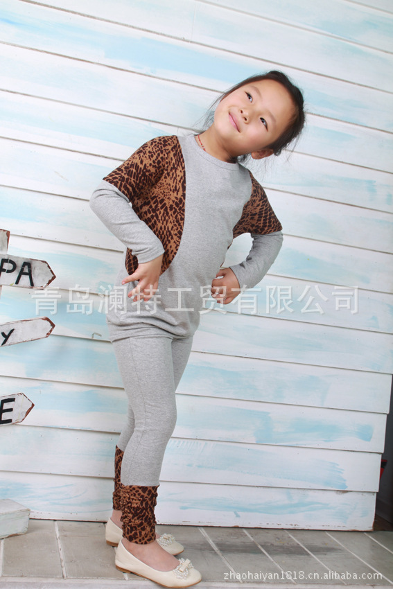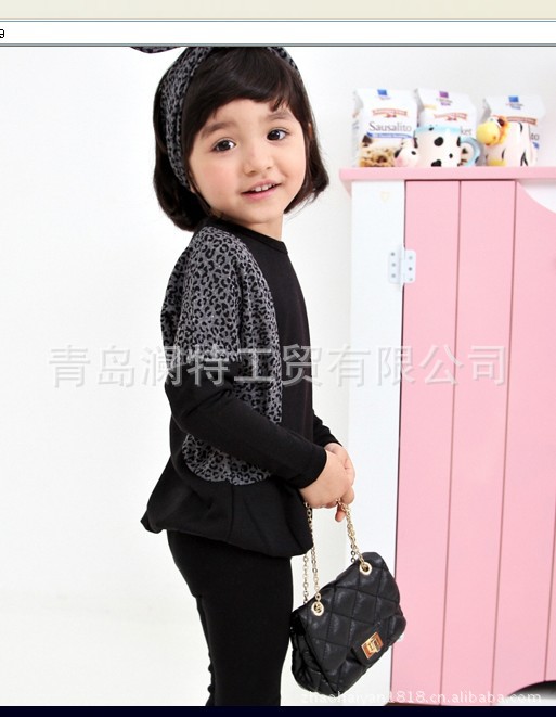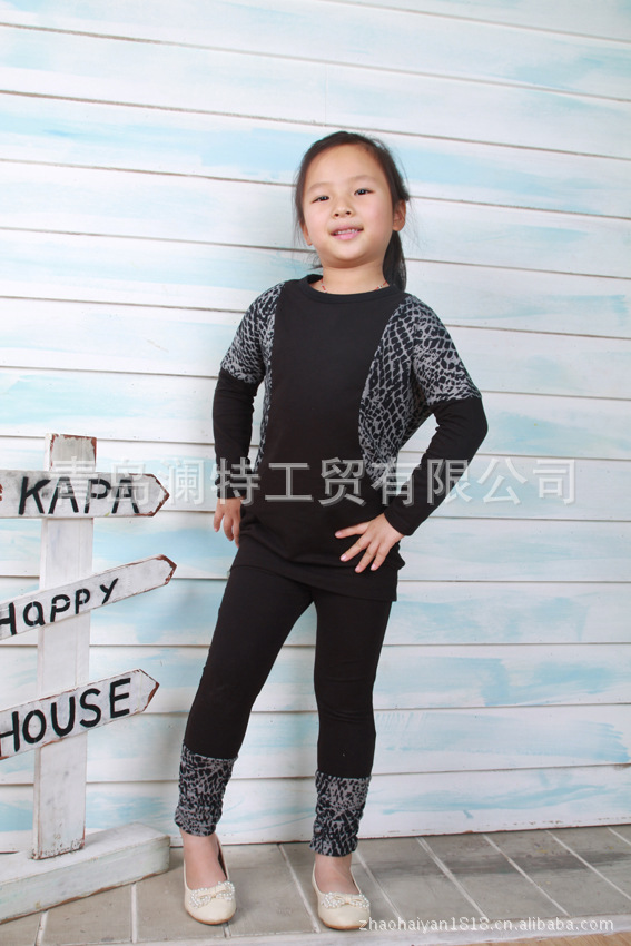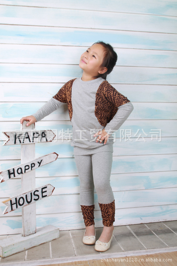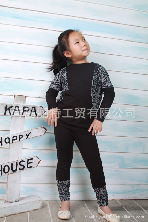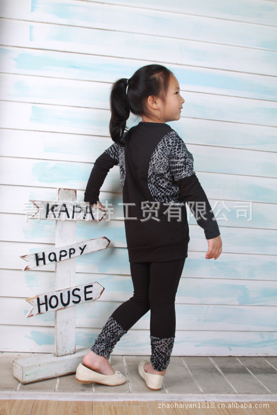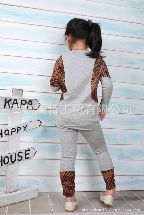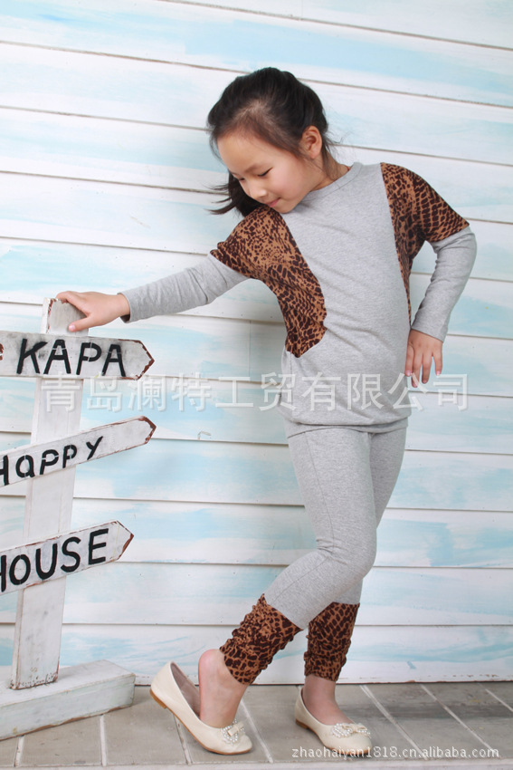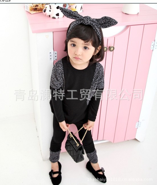 春秋款韩版 童装 咪呢皮特 花斑配色 衫+底裤2件套 套装