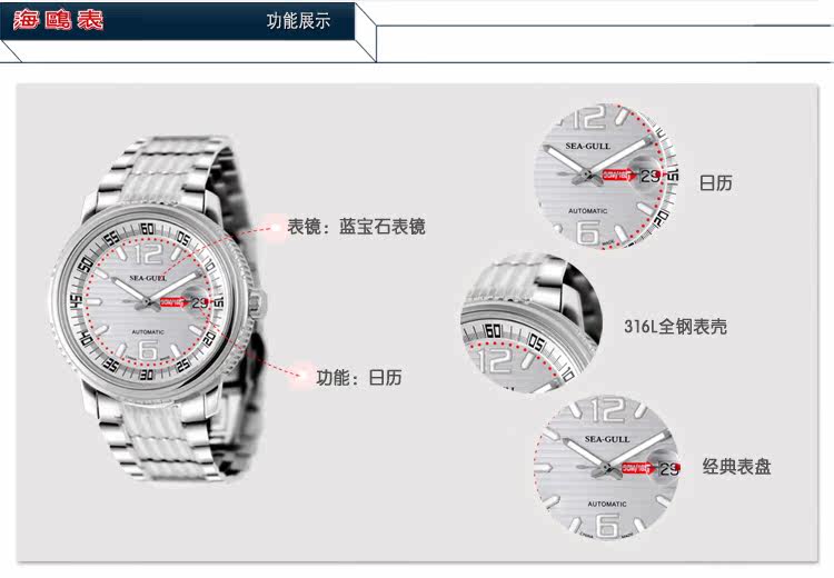 顾客评价: 很好.时尚给力,唯一就是日历凸起不爽 今天 Seagull海鸥男士手表商务休闲自动机械表M306S:白盘钢带 林***d(匿名) 不错的一块表,很大气。朋友喜欢。但没有送工具,有点小遗憾,调节表链要找钟表店才可以调节。 服务还不错。 06.05 Seagull海鸥男士手表商务休闲自动机械表M306S:白盘钢带 n***g(匿名) 获认真评价奖 昨天下午定的货,今天就到了,没想到啊,神奇的物流!东西戴在手上的效果比图片上好,就是有点重,毕竟是全钢的吗!戴久就会习惯了。总之,货不错,很满意! 05.28 Seagull海鸥男士手表商务休闲自动机械表M306S:白盘钢带 浆***鱼(匿名) 获认真评价奖 没有 挺好 05.25 Seagull海鸥男士手表商务休闲自动机械表M306S:白盘钢带 leefengjun 东西还可以吧!对的起这个价格! 05.14 Seagull海鸥男士手表商务休闲自动机械表M306S:白盘钢带 洪立陈洪 送货神速!真物比图片好看,附送表带调节器好用,机械表对精度不要太苛刻要求,一个月不差10分钟就好了,呵呵,镜面的一块日历放大镜多余,真想把它抠下来. 05.13 当天追加:希望国货越做越好,不要令国人失望. Seagull海鸥男士手表商务休闲自动机械表M306S:白盘钢带 h***3(匿名) 获认真评价奖 戴了两天.时间很准.差几秒还没测试.找个时间测一下.手表好的戴过.差的也戴过.这个手表款式和质感都不错的.略有瑕疵.但无伤大雅.希望海鸥越做越好.做更多性价比高.质量稳定的手表.还会再来的 服务很好.售前1101人很好.解释详尽.服务绝对一流 05.13 5天后追加:戴了几天这款表确实挺准的.我想为什么不用这款2130的机芯多做几款表呢.像有的款款式很好看.但精确不够.可惜了 Seagull海鸥男士手表商务休闲自动机械表M306S:白盘钢带 邝***华(匿名) 获认真评价奖 很好,经典的机芯。大气的外形。五分。记得补发票来哦。 05.10 Seagull海鸥男士手表商务休闲自动机械表M306S:白盘钢带 玉***哥(匿名) 获认真评价奖 今天下午下班后,公司门位打电话我说有快件到了,我就知道是M306S,本来想验货没想到快递员放下东西就走了,都不用签收。检查后没有问题我就放心了,马上开始调时间、拆表链(自己弄)、上链条(我之前那块表都不用手动上链的,感觉还不够智能),就这样带上了。手表不错,按要求给我发货,比较满意。个人感觉稍稍有点大…… 05.02 Seagull海鸥男士手表商务休闲自动机械表M306S:白盘钢带 huangjiazheng 获认真评价奖 不错,带了一天感觉还可以,只是以前没戴表的习惯,表的调制不大会,走时感觉还蛮准的,支持国产,希望以后不论身在什么地方,我都能装B的大手一挥:什么江诗丹顿,什么百达翡丽,都是虚的。以后还会来支持的!加油!还有就是顺风真的迅猛,北京到苏州,只用了一天! 04.29 Seagull海鸥男士手表商务休闲自动机械表M306S:白盘钢带 s***c(匿名) 获认真评价奖 表很好看,还没带,等过几天带上后再看看追加评论下!目前满意 04.21 Seagull海鸥男士手表商务休闲自动机械表M306S:白盘钢带 宋凯官 突然间爱国热情泛滥,就确定了海鸥。经过选择,有评论st25的飞返不稳定,期间客服福表耐心回答,后来决定选择简单稳定的2130机芯,外表能接受,用三天了,误差在+10左右,这个价钱的话,如果保持这个稳定水平我就能接受。顺丰也给力,下单24小时到货。希望国表越来越好,我希望再选择海鸥表。 04.20 Seagull海鸥男士手表商务休闲自动机械表M306S:白盘钢带 w***b(匿名) 服务很一般 没调表器 我怎么带呀 要了也没给 客服说让找修表的 俺们这山沟沟哪去找修表的 04.18 Seagull海鸥男士手表商务休闲自动机械表M306S:白盘钢带 x***h(匿名) 手表做工不错,精致大方!物流也很快,好评 04.15 Seagull海鸥男士手表商务休闲自动机械表M306S:白盘钢带 兰***0(匿名) 获认真评价奖 是不是正品没有验,不过表厚重,大方,去弄表链的时候,弄表链的师傅说这表还不错,值这个价,从昨天下午5点到上午9点,慢了5秒,我是粗人,不在乎这一点,总体还可以就不错了 04.15 Seagull海鸥男士手表商务休闲自动机械表M306S:白盘钢带 艾荣亮 表不错,厚,重,大,走时也还准,没具体测验秒针,再说我也用不着精确到秒,就是分针和时针在12点时时针有一毫米偏左. 04.09 Seagull海鸥男士手表商务休闲自动机械表M306S:白盘钢带 q***9(匿名) 获认真评价奖 样子挺好看的,老公带着说还不错。 客服还专门打电话来问带着的情况,很负责。 全五分。 04.08 Seagull海鸥男士手表商务休闲自动机械表M306S:白盘钢带 m***y(匿名) 获认真评价奖 看起来还可以,每天快不到5秒。 04.04 Seagull海鸥男士手表商务休闲自动机械表M306S:白盘钢带 路***6(匿名) 帮别人买的! 整体还是不错的! 04.02 Seagull海鸥男士手表商务休闲自动机械表M306S:白盘钢带 l***m(匿名) 手表很精致,服务很好,顺丰很给力, 03.30 Seagull海鸥男士手表商务休闲自动机械表M306S:白盘钢带 s***3(匿名) |