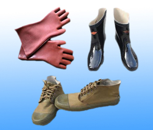 四、穿用绝缘靴时,应将裤管套入靴简内。穿用绝缘鞋时,裤管不宜长及鞋底外沿条高度,更不能长及地面,保持布帮干燥。