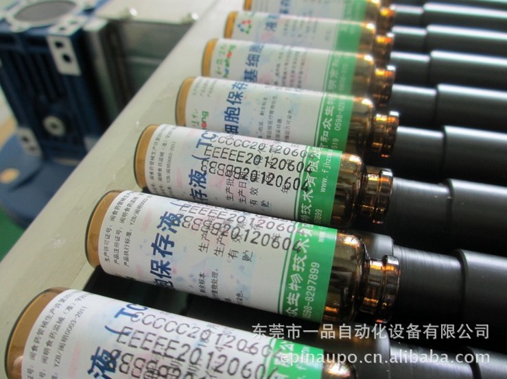 应用实例:速冻果汁贴标、固体胶瓶贴标、口服瓶、西林瓶贴标、笔杆贴标唇膏贴标等。
