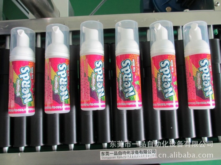 高速;接前端灌装线,采用立转卧式滚筒输送机构,输送链倾斜,双边导向,瓶子自动导正,输送贴标稳定。贴标速度高达100-300瓶/分钟,节省大量人力物力;