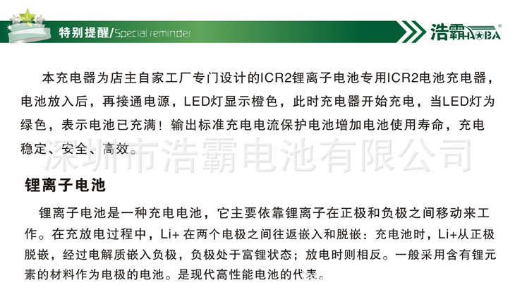 深圳浩霸18650 电池充电器停充充电器套装配2粒3000mAh卡装