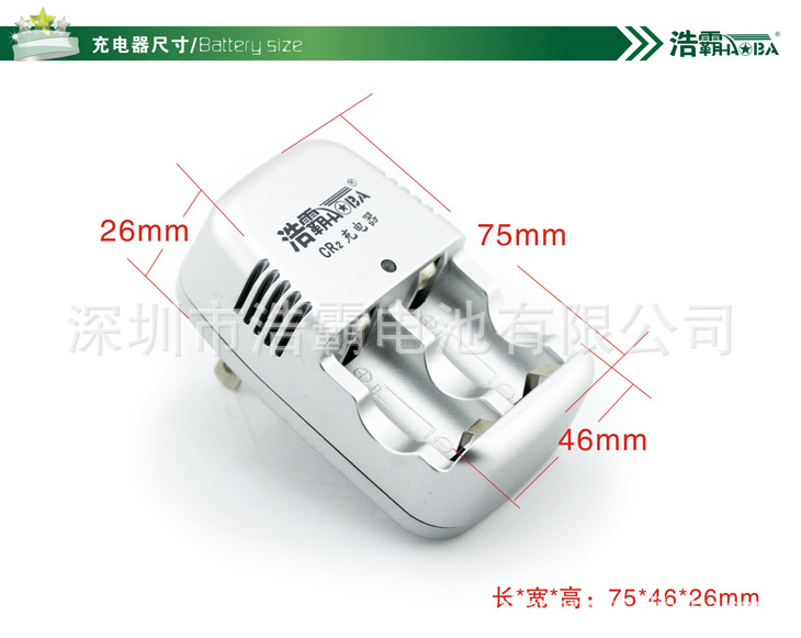 生产商直销浩霸ICR123A 3.6V电池充电器套装 配2粒1000mAh(卡装)