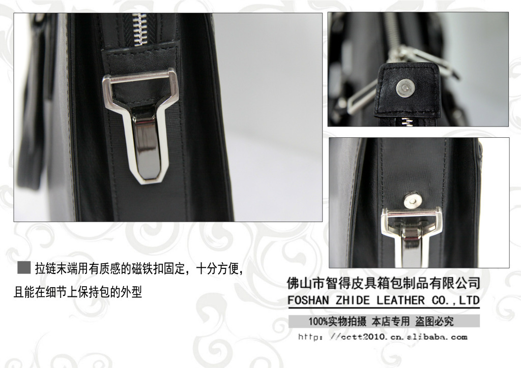 本公司位于佛山市南海区,主营 男装包,男装夹包,女装包,公文包,男包,女包,钱包 等。是一家集品牌经营、产品开发、规模生产、市场行销为一体的皮具制造企业。多年来一直以精湛的工艺、优良的品质著称於业内。本公司设计的皮具以其紧贴时 尚、角逐潮流、简洁大气的设计风格和“突出追求自由,展现自我个性”的设计理念,迎得了各大公司的青睐与信赖。我们秉承“以信誉为根本、用品质求发展”的 经营主旨,无论是在款式的设计、用料的选择、还是在产品的定位上都要经过精心的策划,博得了良好的口啤。 本公司成立于2000年,厂房面积1000方,现拥有生产人员100多人。有及富创意的资深设计师,曾为各大名牌产品作过设计,其作品现在市场拥有大 量的爱慕者。在此本公司真诚的感谢老客户的支持,望您们继续支持,同时望新的客户考察我们的团队,使我们的团队更持续的发展多提宝贵意见。欢迎新老客户, 海内外客商来样来款定做,竭诚欢迎各界人士垂询惠顾。 公司秉承“顾客至上,锐意进取”的经营理念,坚持“客户第一”的原则为广大客户提供优质的服务。欢迎惠顾!