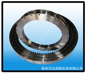 2.,单排交叉滚柱式回转支承由两个座圈组成,结构紧凑,重量轻,装配间隙小,对安装精度要求高,滚柱为1:1交叉排列,能同时承受轴向力,倾翻力矩和较大的径向力,被广泛的用于起重运输,工程机械和军工产品上。