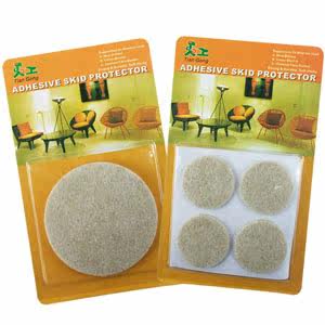 | 毛毡桌椅保护垫(背面带粘性) | | 颜色 | 米黄色 | | 材质 | 耐磨毛毡 | | 尺寸 | 正方形边长8.5cm(2只)装一袋 正方形边长4cm(8只)装一袋 圆形直径8cm(2只)装一袋 圆形直径4cm(8只)装一袋 | | 推荐理由 | 本保护垫粘性强,使用方便,可防震,降噪,耐磨,减滑,可防桌面与地板刮伤,延长物件使用寿命。产品尺寸大小可依个人所需而自由选择。 | | 重量 | 约20g | | 包装 | oPP袋+纸卡 |