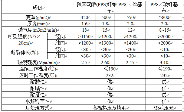 5、在温度190℃~232℃工矿条件下,气布比高达5:1做线上清灰及气布比6:1作离线清灰时,PPS滤袋具有优异的性能纪录。