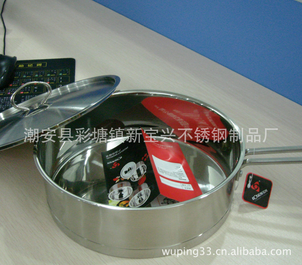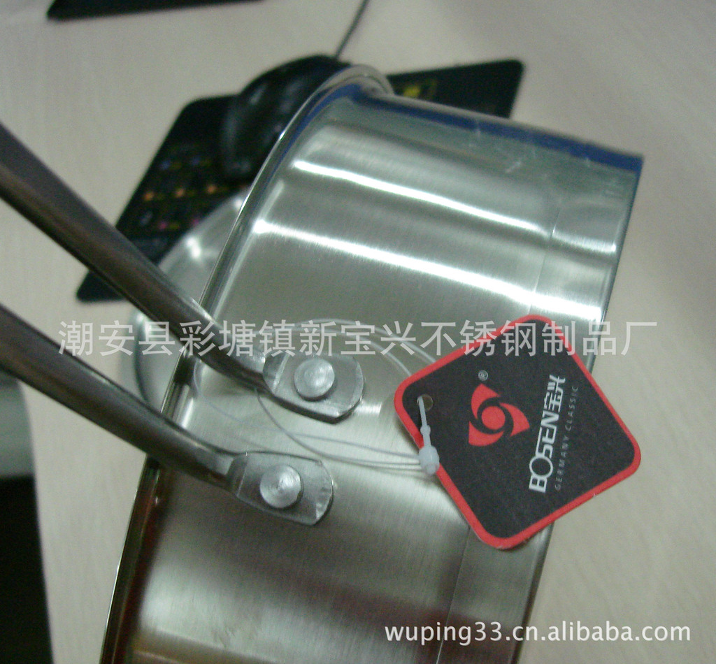德国宝兴(国际)厨卫有限公司系在广东省潮安县彩塘新宝兴不锈钢制品厂生产厂商,本厂在原有产品系列不锈钢双层保温提锅系列;苹果,QQ,新新,港式乐扣等款式新颖的双层保温便当盒;豪华厨用三件套;保鲜盒;炫彩调理盆;调理智慧锅;葡萄盘套装;酒店专用各式冰桶得基础上,2011年新研发生产的产品有:四菜一汤精品套装(双\\单层);欧式户外烧烤炉;欧式直形锅系列套装产品。