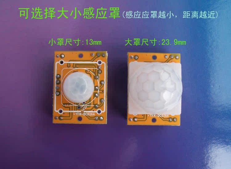 探头双元所感应。为了增加感应角度范围,本模块采用圆形透镜,也使得探头四面都感应,但左右两侧仍