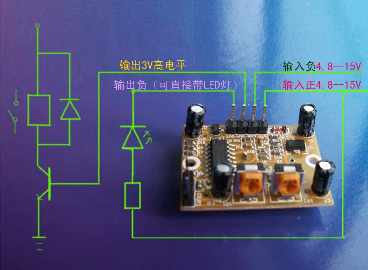 1.全自动感应:当有人进入其感应范围则输入高电平,人离开感应范围则自动延时关闭高电平。输出低电平。