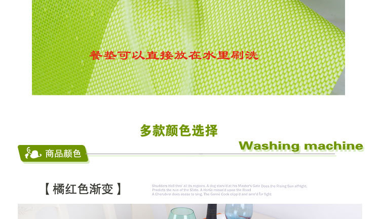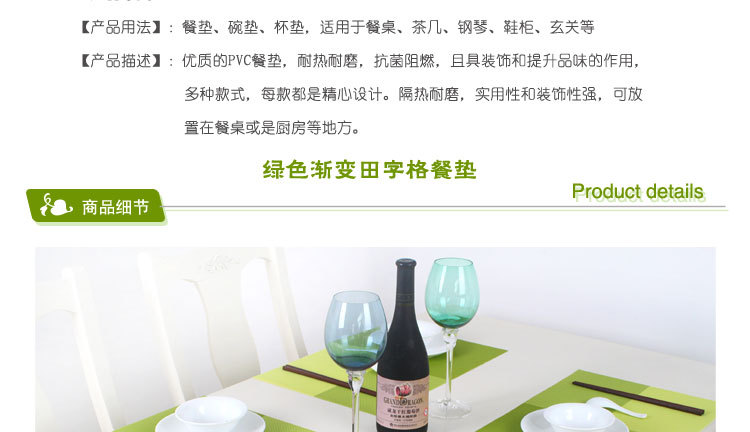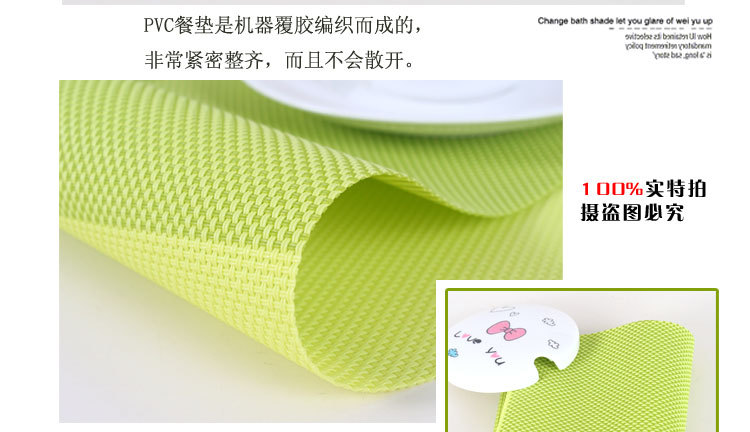 【产品用法】:餐垫、碗垫、杯垫,适用于餐桌、茶几、鞋架、玄关等
